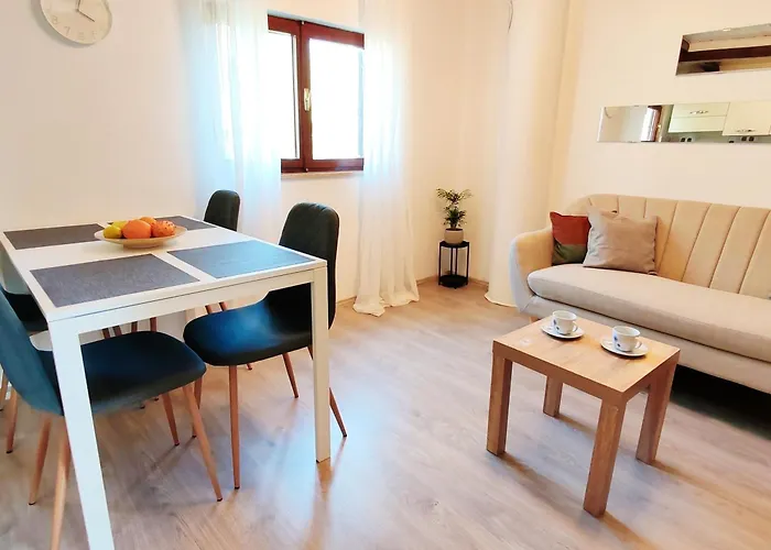Apartment Venierアパ-トメントには,器具でいっぱいの台所,ソファ,衛星テレビ と冷暖房付きの客室があります. タウン クロックまで車で5分,聖エウフェミヤ聖堂まで2.4キロです.
